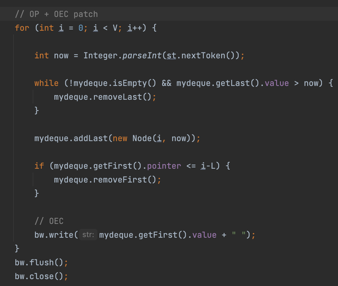 bw.write(mydeque.getFirst().value + " ");