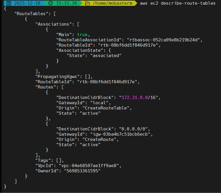 aws ec2 describe-route-tables