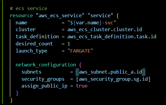 service 리소스 안에 cluster와 task가 들어간다