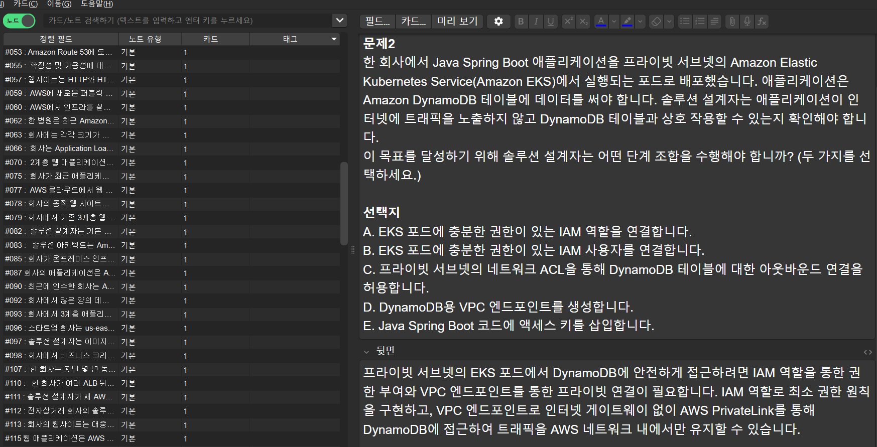 이 세가지 위주로 ANKI에 핵심적인 약 200문제를 작성, 두세번 정도 돌리고,