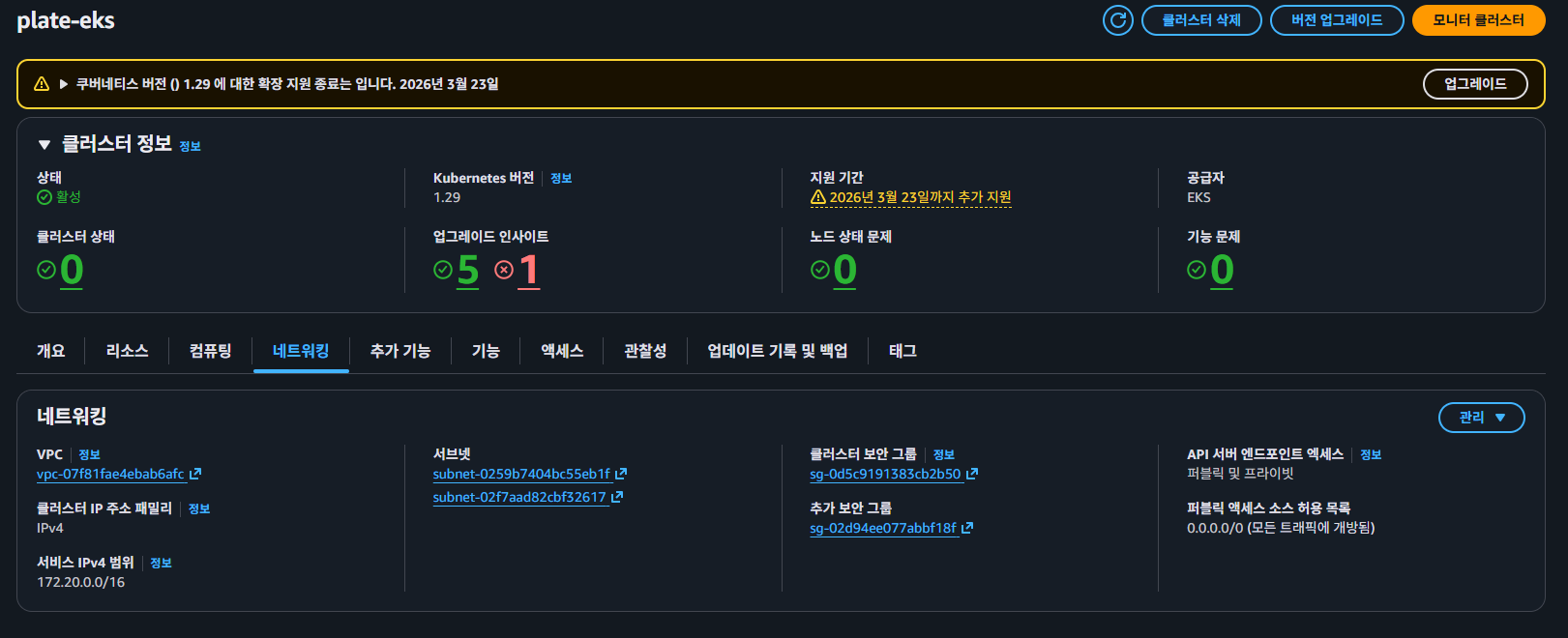 클러스터 상세