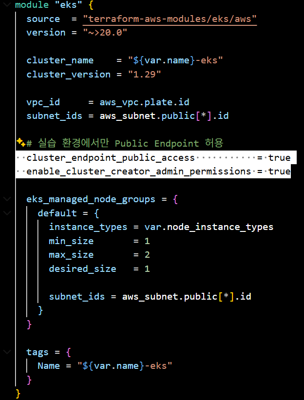 -> 클러스터 만든 IAM 주체에게 자동으로 k8s admin 권한 부여